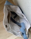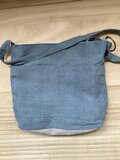 グレイッシュブルーの色合いが何とも言えない雰囲気があり素敵でした。赤い紐のステッチは、最初はビーズかしら、と思ったほど立体感があります。ブルーの背景に効いてアクセントとなっていますね。 この季節の良い時期にカジュアルに斜め掛けしてお出掛けしたいです。 この度も素敵な作品をありがとうございました。