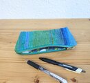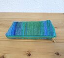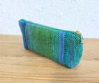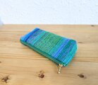 手織りポーチ、横長、大きい グリーン(綿とシルク)