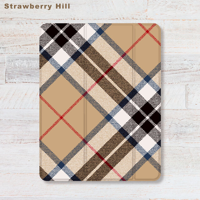 タータンチェック iPadケース ペン収納 軽量 背面クリア あいぱっどけーす スタンド機能