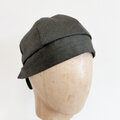 イタリアのGANDINI社の上質なウール布を使用したモスグリーン色のドッカーキャップです。白色やキャメル色など様々な色から構成されているため、色に奥行きがありマットではありますが、光によって光沢が出てとても美しい布です。
