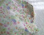 淡い色合いで草花模様が描かれた生地は
