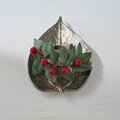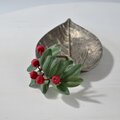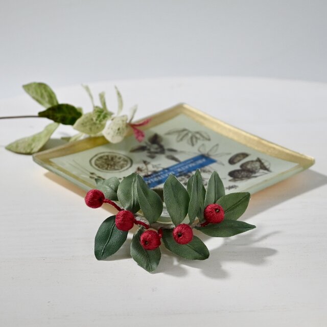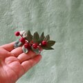 元気をもらえる赤い実のヒペリカムをリングタイプの布花のブローチに仕立てました。