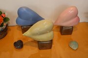 半分青い…お皿無事、手元に届きました。配送の件では無理を申し上げ、すみませんでした。 作品は、たぶん一緒です。たぶんと言うのは、私的には、濃い色合いでグレーがかっていると思っていたからです。でも、モニターによって見え方が違う誤差の範囲だと思います。現物は薄めの青で「半分青い…お皿」という表現は合ってますね。お皿を拝見した時、衝撃を受けました。雰囲気が好みでした。送って頂いた作品も気に入りました。大切にします。