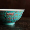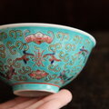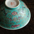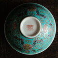 ビビットカラーで可愛い◆花と漢字と蝙蝠。中国景徳鎮 色絵小碗・小鉢 花唐草 蝙蝠 チャイナレトロ グリーン
