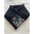 お気に入りのミナペルホネン生地を使ったマフラータイプの被らないネックウォーマーです。
