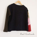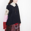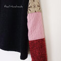 異素材パッチワーク袖・チャコールネッププルオーバー
