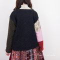 袖には雪柄ジャガード、ケーブルニット、ブークレニットなど異素材を贅沢にパッチワーク。