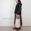 [Coordinate] ワッシャーハーフリネンチョコとアンティークローズ・ブロックチェック切替スカート(セットアップ可)