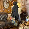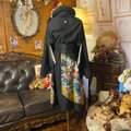 【 和洋折衷 黒留袖 着物 リメイク ワンピース ドレス 洗える 化繊 ハンドメイド レトロ 古着 黒場に絵巻の風景が咲く。 TKW-77】