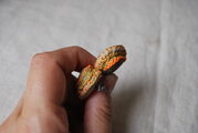 ピアスホールが下の方にあいている方だと、重みで少し下を向いてしまうかもしれませんが、厚みがあるので側面の刺繍も見えて、それはそれで可愛いと思います。
