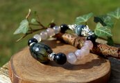 受け取り致しました。いつも素敵なお心遣い感謝致します。連日の猛暑でかなり身体が参ってしまい、受けたものの対処がかなりキツくて強烈に守ってくれる石が必要かも!と思っていたところテレパシー(笑)守りと言うとイメージ的に暗い感じがあったのですが、こちらのブレスレット閃光を放っているような、神秘的でシックでとっても美しいです。素敵な作品に出会えて嬉しいです。ありがとうございます。