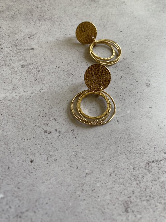 耳元にプラスするだけでスタイリングの方向性を決めてくれるような、メタルオンリー、テクスチャが華やかな大振りイヤリング。