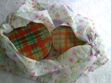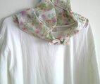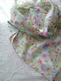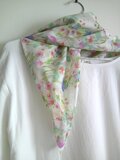 薄く柔らかいコットンローンの 肌ざわり は 優しく襟元を 温めてくれそう! 軽くて 小さくなるので バックに 入れて 置いて 何時でも使えるよう出来そう。 プチプレゼント とっても可愛い。