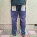 ロング麻パンツ(ナス紺×生成り)