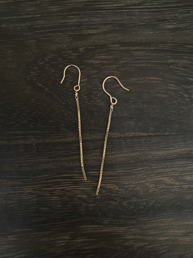 キラキラと揺れる金のボックスチェーン、邪魔にならないサイズと思います