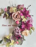 ユリとバラのクレッセントアンティークリース