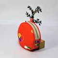 朱赤色地に椿の花が描かれた着物をリメイクして作りました。