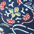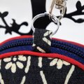 紺色地に吉兆柄文様が描かれた着物をリメイクして作りました。