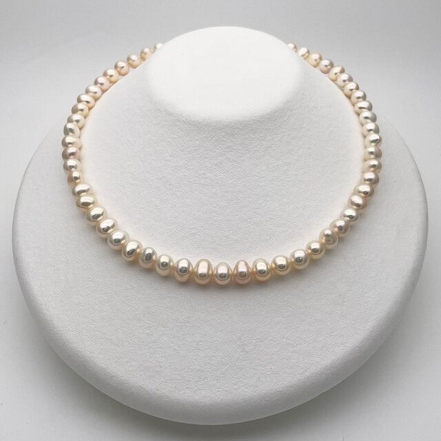 【極み輝】1点限り メタリック本真珠パールネックレス ポテト セミラウンド 淡水パール ナチュラル 中粒【ktn003】
