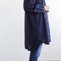 とろけるような肌ざわり 秋のはじまりに✦ 東炊きコットン チュニック丈ロングシャツ(ネイビー)TP09