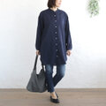 とろける着心地 東炊き綿ローン チュニック丈ロングシャツ(ネイビー)TP09