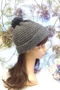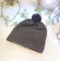 ニット帽 ビーニー ワッチキャップ ポンポン付き 2way グレー