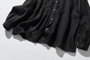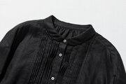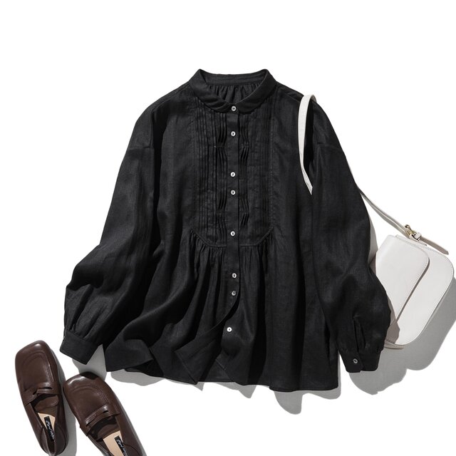 洗練された印象を叶える 大人のきれいめシャツブラウス 長袖ブラウス リネン100% ブラック 250920-2