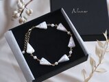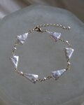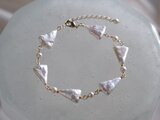 三角形のバロックパールと小さな淡水パールがポイントで、りぼんのようにも見えるデザイン。