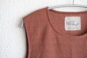 リネン80%、コットン20%のノースリーブのニット。商品名にはアンダーウェアとありますが、襟ぐりは空きすぎず、形も体の線を拾わない編み地と色、デザインパターンのため、カットソーとして着られる方も多いです。