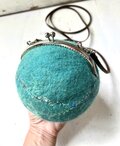 球体の羊毛フエルトがま口で、ポシェットタイプです。