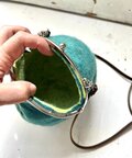 羊毛フェルトのまんまるがま口ポシェット(セルリアン)