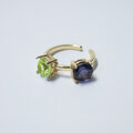 爽やかなライトグリーンのペリドットと、深みのある青紫のアイオライトを並べたイヤーカフです。