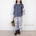 [予約販売] チャコールリネン×エンジェルソフト・モノクロブロッサム袖フリルプルオーバー(セットアップ可)