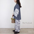 同柄のパンツとセットアップで着れば、華やかで個性のあるスタイルに。
