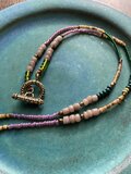 ガラスビーズ、シェルビーズ、真鍮、蝋引き糸、羊毛、合金