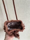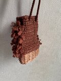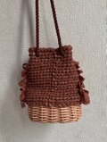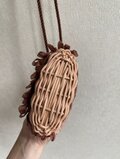 【1点在庫あり】スマホポシェ「ブラウン」籐とかぎ針編みのバッグ /かごバッグ/スマホショルダー/スマホポーチ