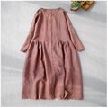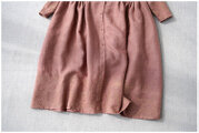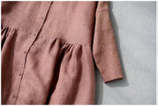 リネン100%贅沢総刺繍ポケット付きシンプルな大人可愛い五分袖ワンピース♪ -