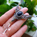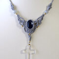 両サイドには光の加減で繊細な輝くシラーが現れる良質なシルバームーンストーンを合わせて、首元を華やかに彩る印象的なマクラメ編みアクセサリーに仕上げました。