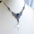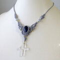 ラピスラズリ(アフガニスタン産)・クロス水晶(ブラジル産) マクラメ編みチョーカーネックレス 男女兼用可アクセサリー3057