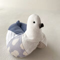 しっぽから口ばしにかけて手縫いで丁寧に縫い合わせ、コロンと愛らしいフォルムに仕上がりました。