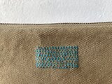 片面にターコイズブルー色の綿糸で刺繍をしました。