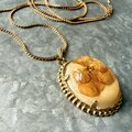 N296-ヴィンテージネックレス U.S.A. Underwater Flower Oval Cabochon