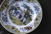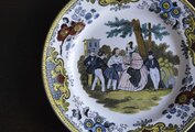 Creil クレイユ ファイアンスフィーヌ 手彩色 平皿 グリザイユ皿 φ20.6cm フランス アンティーク 0502273