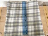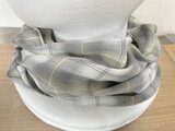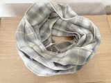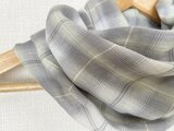 すべすべ肌感リネン50%.綿50%二重巻タイプブルー&ベージュイエローチェックネックウォーマー