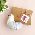 しっぽから口ばしにかけて手縫いで丁寧に縫い合わせ、コロンと愛らしいフォルムに仕上がりました。