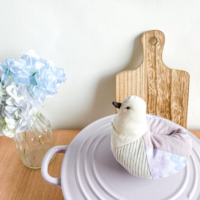 鳥さんの下側(お鍋などに直接触れる箇所)は、汚れが目立たないようベージュのリネンを使用しています。