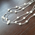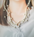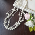8mmサイズのコットンパールをつなげた1連に加え、クリアな丸小ビーズとコットンパールを組み合わせた1連、そして2連のネックレスを合わせた計3本のセット。