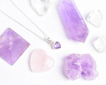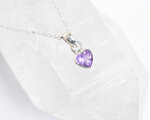 深みのあるパープルが美しいアメジストを、可愛らしいハート型にカットしてシルバーネックレスに仕立てました。