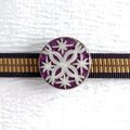 パープルの地色に透け感のある白で模様を描いた小ぶりの帯留めです。