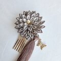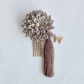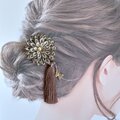 つまみ細工の花と蝶の髪飾り タッセル付き ブラウン 《浴衣、七五三、成人式、着物》